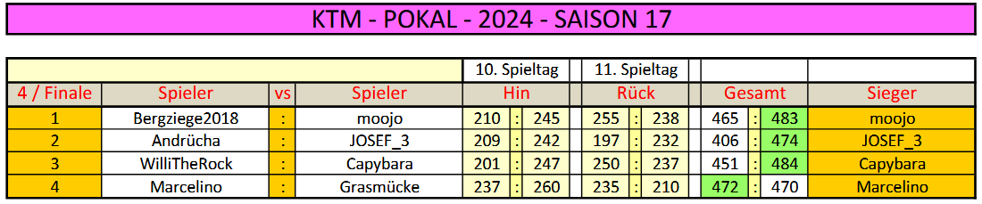 Der Pokal startet mit einem Play-off. Die Besten 32 qualifizieren sich für die KO-Phase. Gewertet werden die ersten 4 Runden der KTM, wobei es ein Streichresultat gibt. Die 3 besten Ergebnisse der ersten 4 Runden werden addiert und die 32 Besten qualifizieren sich so für die Ko-Phase. Zusätzlich gibt es den Amateur-Pokal, bei dem die 16 besten Amateure (Platz 33-64) antreten dürfen.