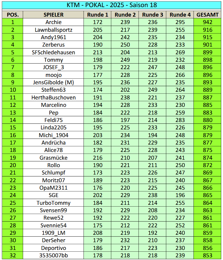 PLÄTZE 32-64 SIND FÜR DEN AMATEUR-POKAL QUALIFIZIERT