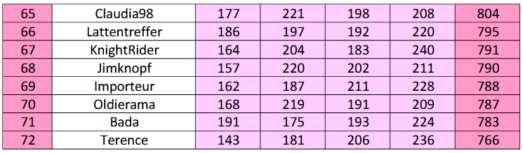 PLÄTZE 65-72 SIND AUSGESCHIEDEN