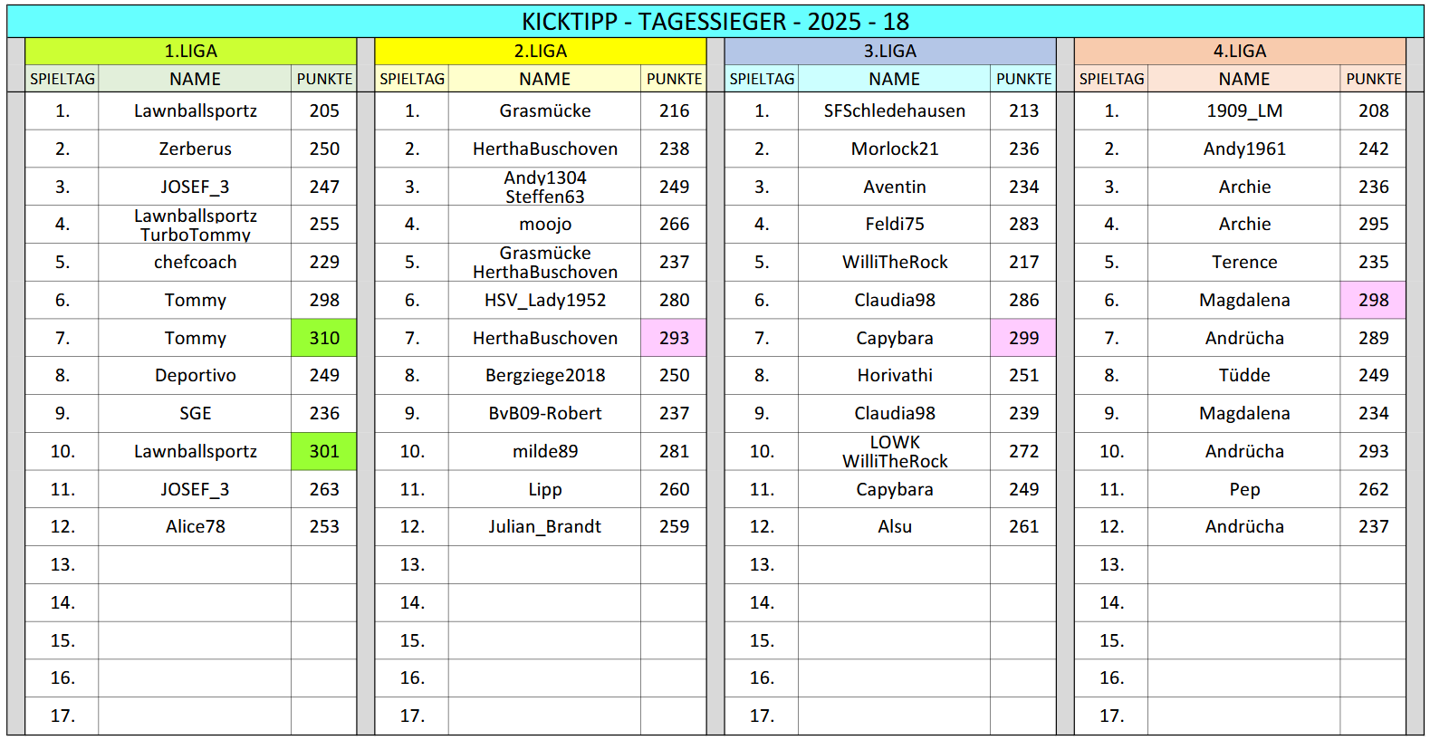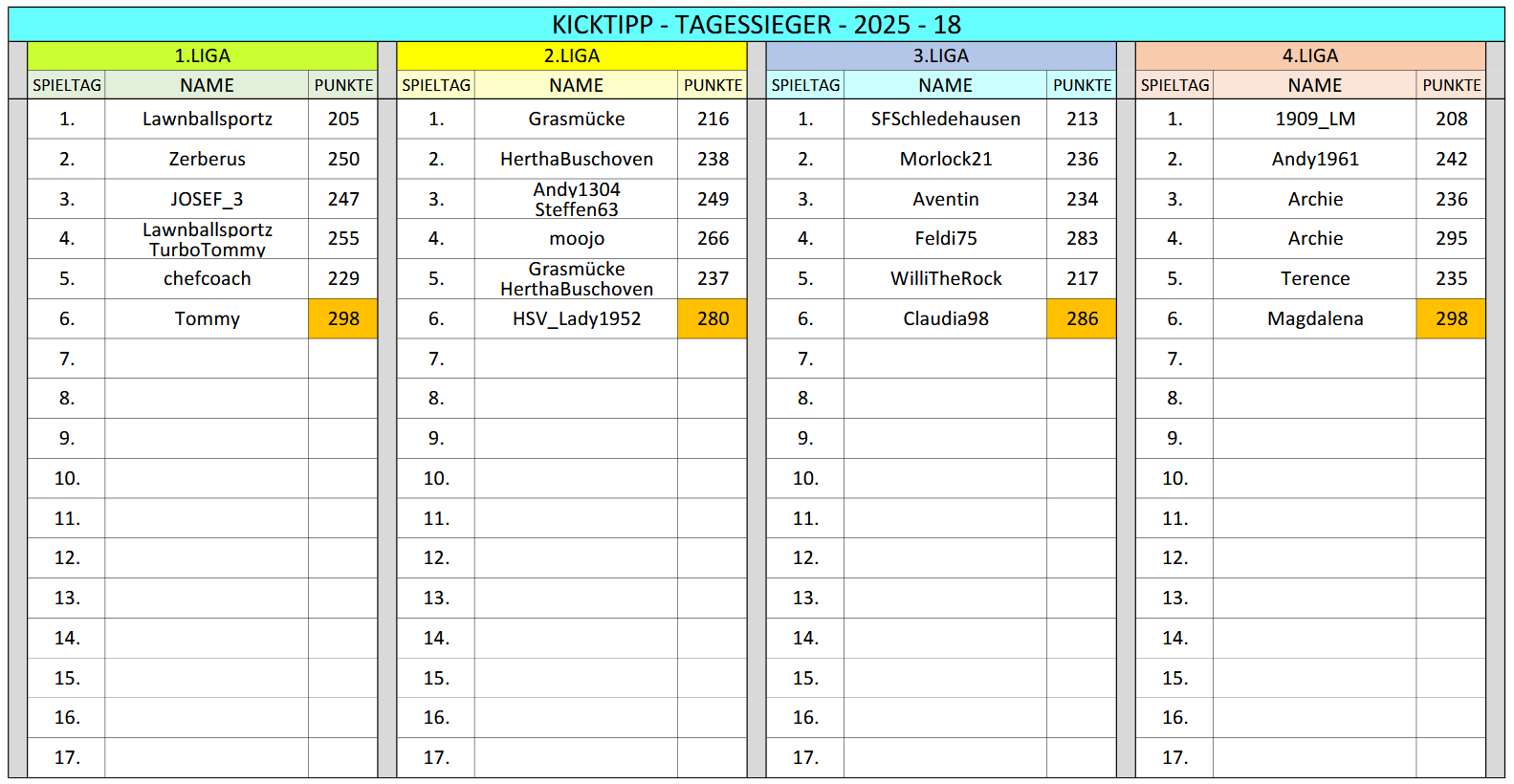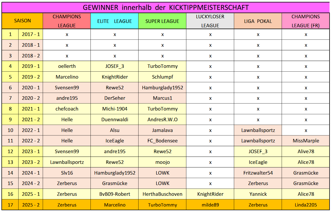 GESAMTPUNKTE aller Tipper von Saison 17